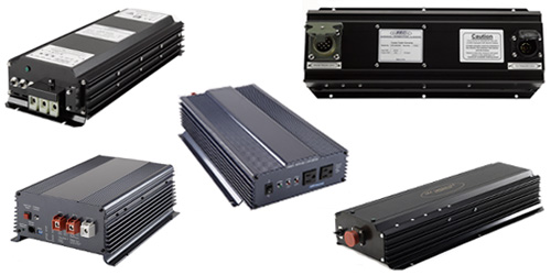 Power conversion products for use with military vehicle 24 Volt electrical systems and 12 Volt commercial/civilian vehicles. All power conversion products listed operate from standard negative ground systems.